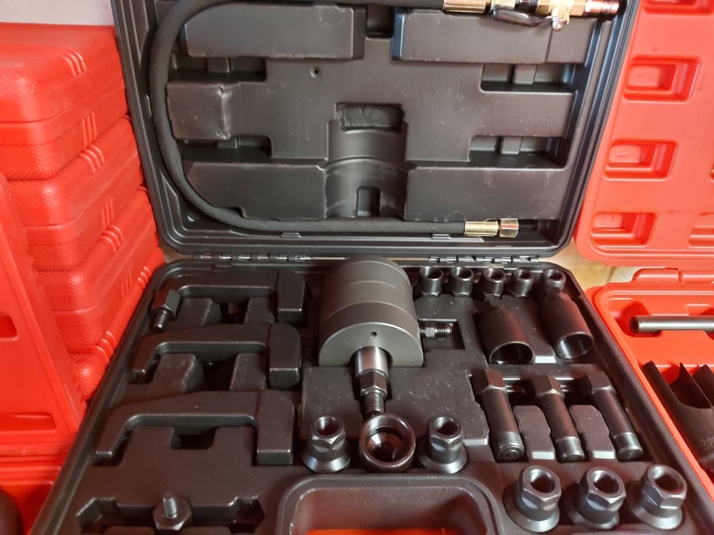 Deze professionele pneumatische gereedschapsset is speciaal ontworpen voor het veilig en efficiënt verwijderen van vastzittende dieselinjectoren. Dankzij het pneumatische vibratiesysteem (perslucht) worden krachtige trillingen gegenereerd die helpen om injectoren los te maken zonder schade aan de cilinderkop of omliggende motoronderdelen.